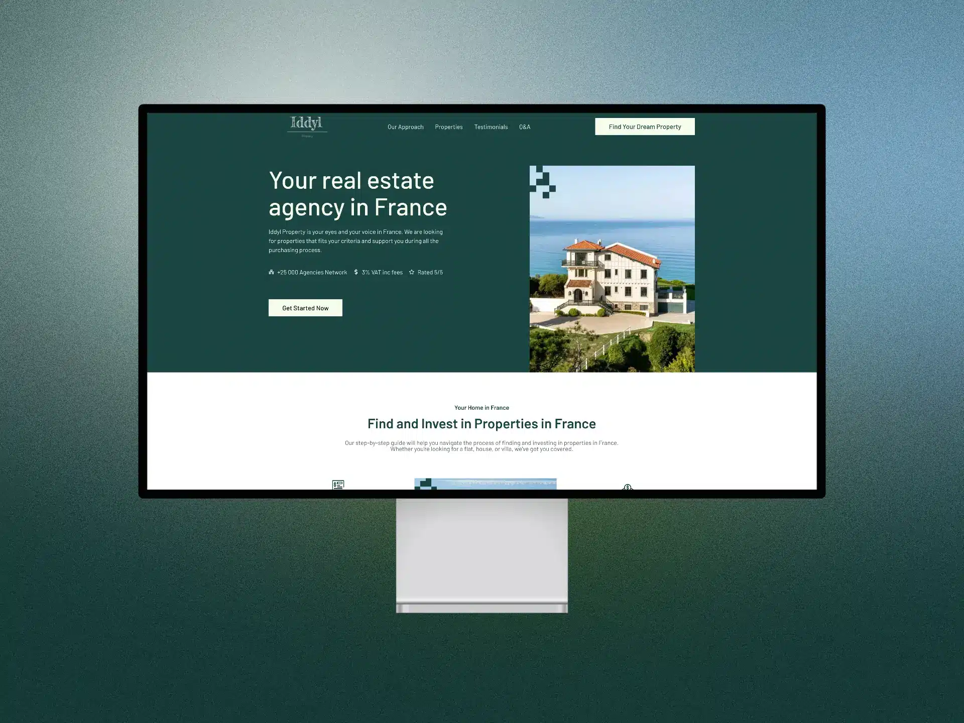 Construire une landing page moderne et épurée qui converti. Iddyl aide les personnes vivant à l'étranger à trouver le bien de leurs rêves en France.