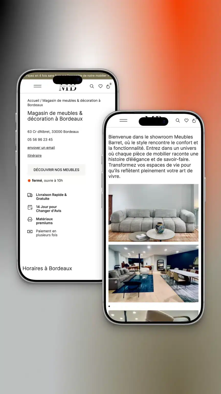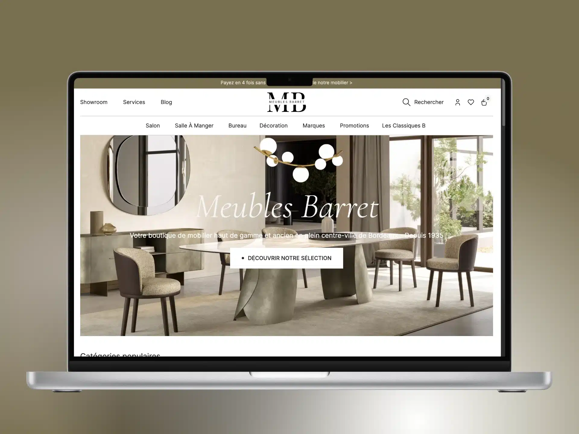 Meubles Barret, malgré son prestige local et sa longue histoire, ne disposait pas d’un site web. L’entreprise souhaitait moderniser sa présence en ligne afin de mieux refléter la qualité de ses produits et de conquérir une clientèle plus large, au-delà de Bordeaux.